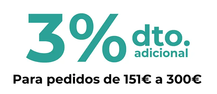 - Para pedidos de 151 € a 300 € se aplicará un 3% de descuento.